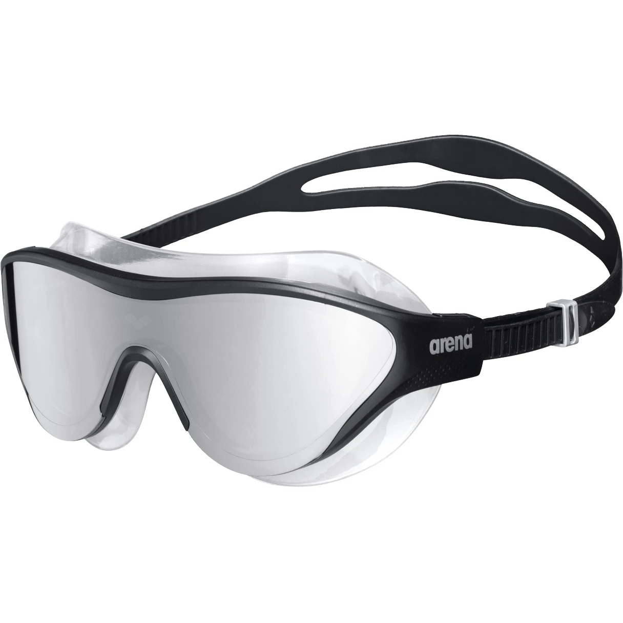 De uiterst comfortabele, spiegelende arena unisex zwembril The One Mask Mirror is ideaal voor fitnesszwemmers. Dankzij het exclusieve ontwerp passen ze bij de meeste gezichtsvormen. De uiterst zachte en hypoallergene siliconen afdichting zorgt voor een aangenaam draagcomfort. De neusbrug past zich tijdens het dragen aan de vorm van het gezicht aan. De gesplitste hoofdband is gemakkelijk aan de zijkant te verstellen en zorgt voor een stabiele en comfortabele pasvorm, zelfs met lang haar. Dankzij het grote frame is het ook geschikt voor grote hoofdvormen. De bril heeft een anticondenscoating, UV-bescherming 400 en is PVC-vrij.